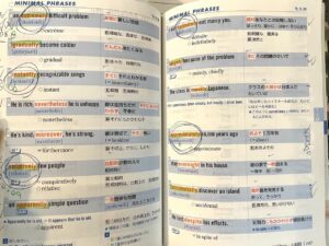 →英単語はとにかく繰り返して、単語を目にする機会を増やすことが重要です!ちょっとした空き時間に単語帳を開きましょう!私の場合、何回やっても覚えられない単語は印をつけたり付箋を貼ったりして目立たせていました!
