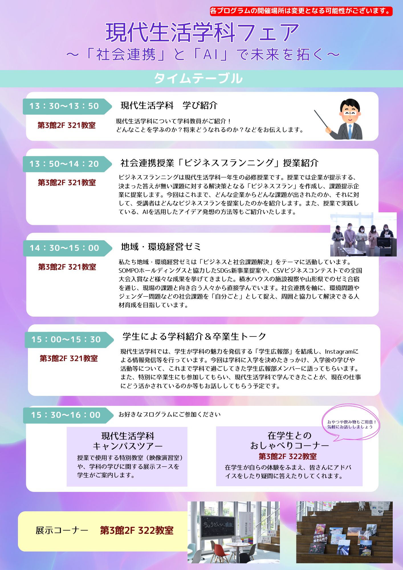 生活科学部 現代生活学科の学びを体験できる特別イベント!
