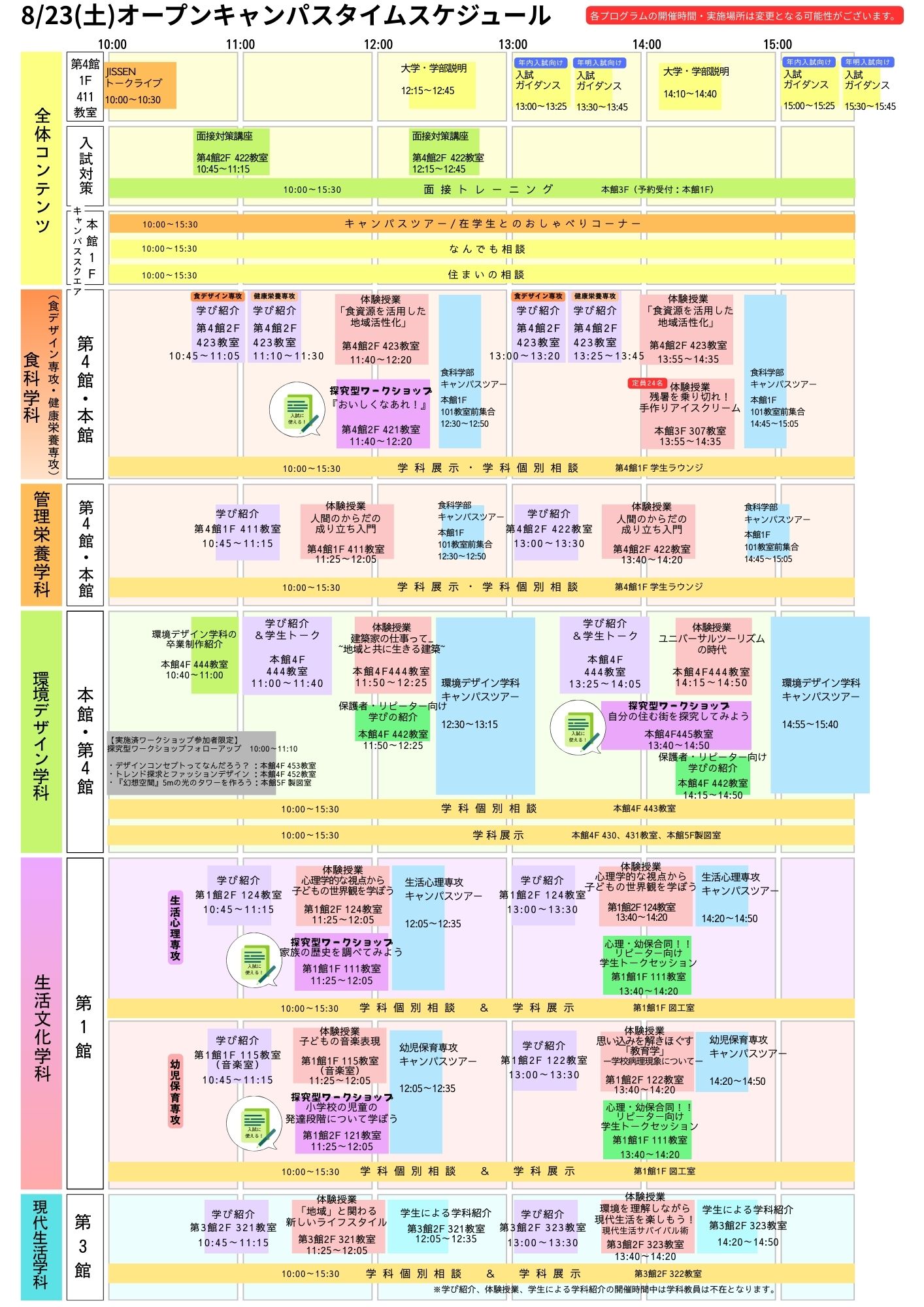 ※食デザイン専攻、健康栄養専攻、環境デザイン学科は開催時間が異なります。プログラムをご確認ください。